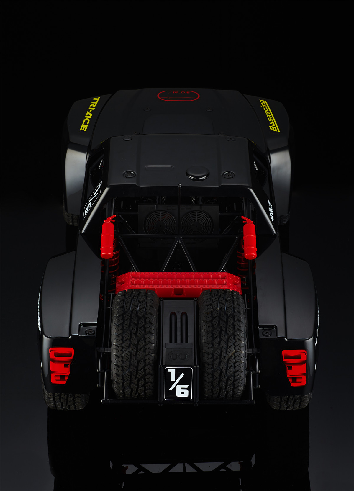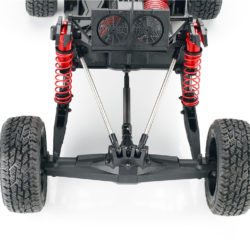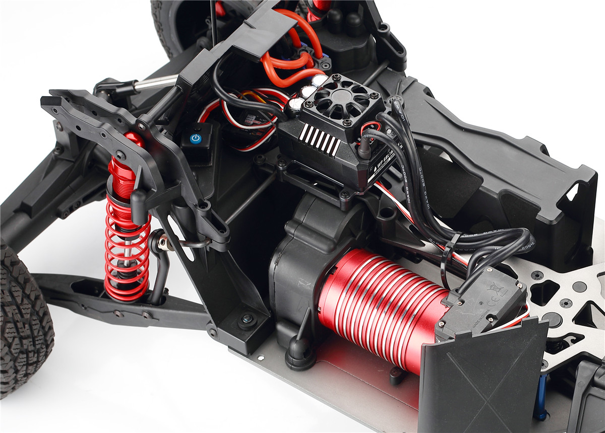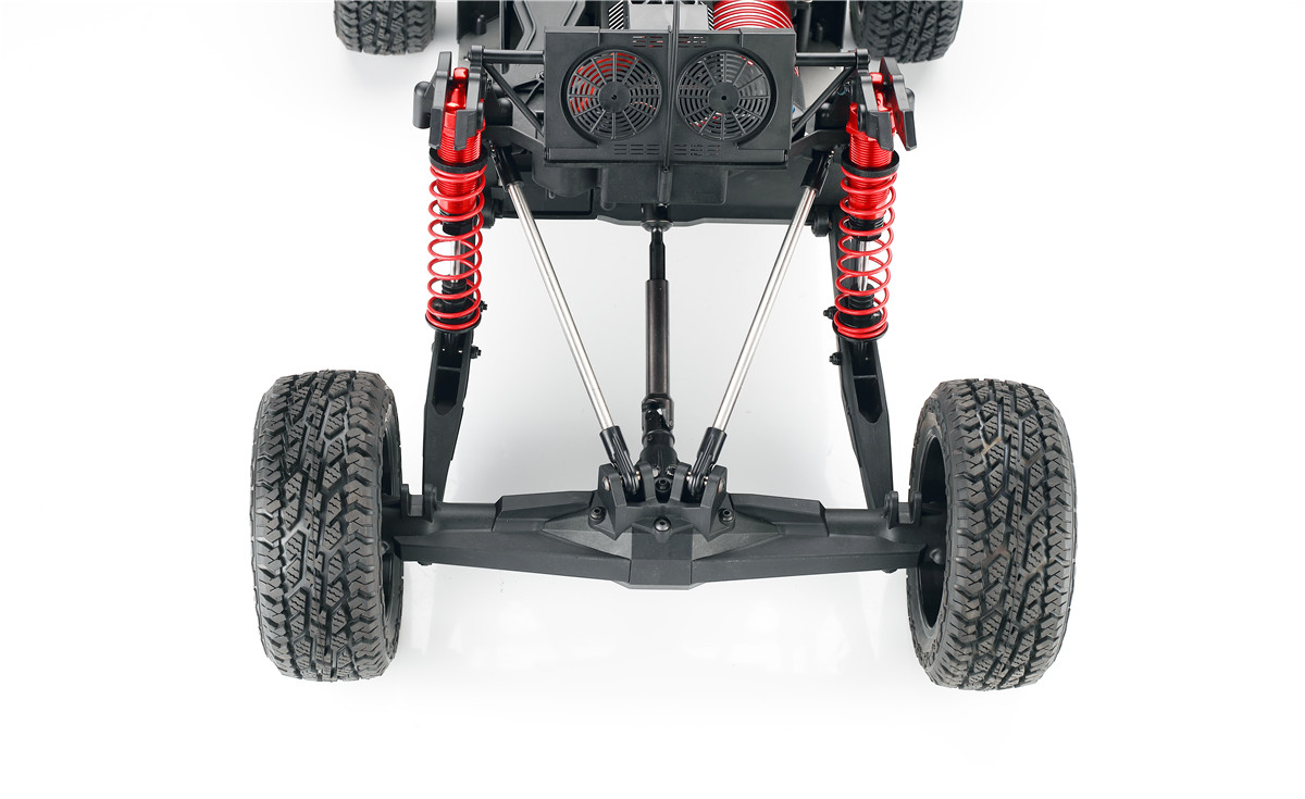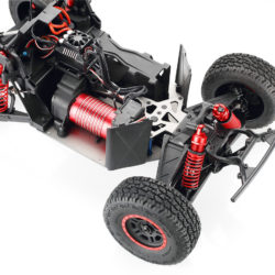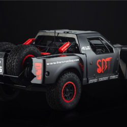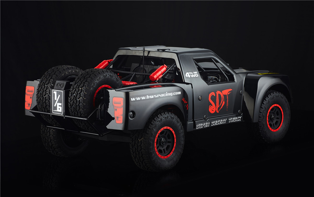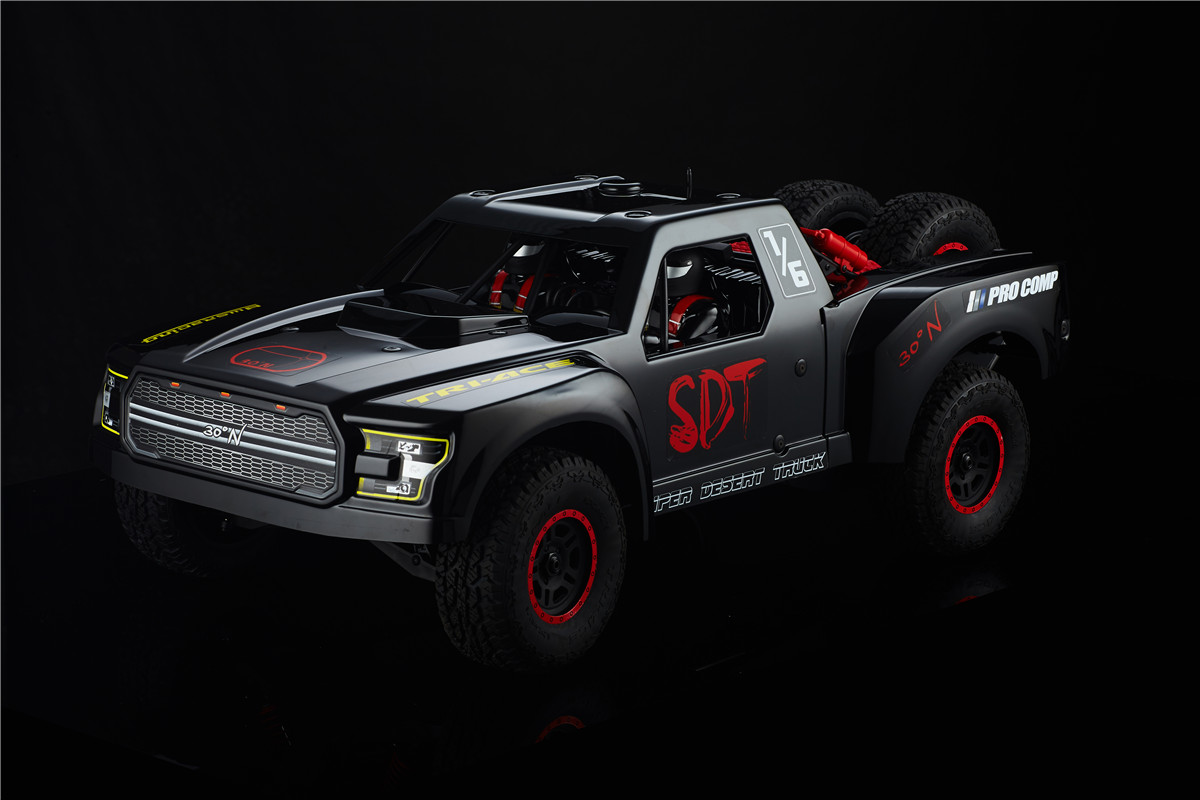 30 DNT-E ‘Super Desert Truck’ 30 Degrees North have made the 1/6th scale desert truck experience more accessible for the new beginners to RC, this has been tried and tested by veterans of the game. The 30 DNT-E SDT incorporates realistic handling and control, with advanced components and design technology, giving you a Very realistic 1/6th Scale Desert Truck Experience, They come complete with a 4pc set of ‘Raptor Trophy Truck’ Designed body panels, Awesome Driver Figures, and the insane off-road capabilites that the full-scale trucks are famous for, this brushless beast is exactly what you’re missing in your RC line up. MAX6 160A Brushless ESC: This ESC was designed with 8S LiPo use in mind. This 150A rated ESC can work with both sensored and sensorless motors. It comes with a high-output, selectable 6V or 7.4V BEC for driving big torque high voltage servos. This is built tough for all conditions that can be found, and has excellent dust, dirt and water protection and is further helped by the highly reliable electronic switch. The built-in spark proof circuit stops you getting those sudden jolts when connecting your batteries as well as protecting your connectors. Compatible with sensorless brushless motors and sensored brushless motor Super internal switch-mode BEC with switchable voltage of 6V/7.4V and a cont./peak current of 6A/25A for easily driving big torque servos and high voltage servos. Highly reliable electronic switch avoids trouble which may happen to traditional mechanical switch due to dirt, water, dust and etc. The built-in spark-proof circuit effectively protects not only battery and ESC connectors from damage but also users from physical injury (to hands) caused by strong electrical sparks produced at the battery and ESC connection moment. Separate programming port to easily connect the LED program card or the LCD program box to the ESC. Proportional brake with 9 levels of brake amount/maximum brake force and 9 levels of drag brake force. 5 levels of acceleration/punch from soft to aggressive for different vehicles, tires and tracks. Multiple protection: motor lock-up protection, low-voltage cutoff protection, thermal protection, overload protection, and fail safe (throttle signal loss protection). Advanced programming via portable LED program card or multifunction LCD program box (item sold separately). Firmware upgrade via HOBBYWING multifunction LCD program box (item sold separately). Cont./Peak Current: 160A / 1050A Motor Type: Sensored / Sensorless Brushless Motor (only in sensorless mode) Motor Limit: Brushless Motor Limit with 6S LiPoly/18 cells NiMH: KV≤1500 (5892 size motor) Brushless Motor Limit with 8S LiPoly/24 cells NiMH:KV≤1200 (5892 size motor) Battery: 3-8S LiPoly / 9-24S NiMH BEC Output: 6V/7.2V Switchable, Continuous Current of 6A (Switch-mode BEC) Cooling Fan: Powered by the stable BEC voltage of 6V/7.2V Connectors: 2x ‘EC3’ Female 6.5mm Gold Connectors on output end ESC Size: 70x56x46.5mm Weight: 240g Programming Port: FAN/PRG Port Servo: Brand: 30°N Operating Voltage: 7.4v – 8.4V Operating Speed (at no load): (7.4v) 0.17±0.01 sec/60° Operating Speed (at no load): (8.4v) 0.15±0.01 sec/60° Running Current (at no load): (7.4v) 1800± 30mA Running Current (at no load): (8.4v) 2400± 30mA Stall Torque (at locked): (7.4v) 38± 0.20kg.cm Stall Torque (at locked): (8.4v) 42± 0.20kg.cm Weight: 190±1g Spline: 17tooth Amplifier Type: Digital Control Motor: Name: BWS 5688-3.5D-1200KV Rated Voltage: DC6.5-25V Rotation: CCW Temperature and Humidity: -10°C~+90°C. 5%~85%RH No Load Speed: 17200rpm ± 10%/15V No Load Current: 4.0-5.5A/15V Maximum Current: 120A max imensions: Ø57.8 * 87mm Features: 20mm Adjustable Shocks. 4mm 6061 T6 Anodized Aluminum Chassis. Long Travel Independent Front Suspension. Long Travel 4-Link Live Rear Axle. 160A Brushless ESC. (3-8S) Functional spare tyres mounted on Rear roll cage. Molded roll cage and Driver figures. Easy Access Battery Compartment. Easy Access Motor. Oil filled Alloy shocks all round. 1200Kv Brushless Motor. Rugged Shaft Driven 4WD. Rear-Loading Battery Tray: This innovative Rear-loading battery compartment feature, makes it possible to change the batteries, quickly, easily, and without the inconvenience of having to removing the body from the Truck Full Size Spare Tyres: Not only does the spare tyre’s add to the authentic look, They also serve as a true spares. Long Travel 4-Link Live Rear Axle: Soak up the massive whoops and Bumps, with the same realistic handling and movement of a Full-scale desert trucks. Battery Box Size Approx: 140mm Length 50mm Wide 80mm Deep Recommended Battery Sizes Approx: 140mm Length 50mm Wide 35-38mm Deep Compatible with: 30 DNT-E SDT,