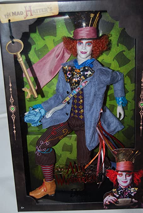 Alice in Wonderland Mad Hatter Johnny Depp Doll Description Contents: doll, jacket, jumpsuit, scarf, hat, boots, doll stand and Certificate of Authenticity Produced by Mattel in 2009 Ages 6+ Item: T2104 The exquisite Disney film, Alice in Wonderland, inspires a wonderful Mad Hatter portrait doll. He wears a costume exactinly re-created from the Tim Burton version featuring Johnny Depp as the Mad Hatter.