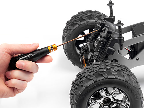 The Jumpshot MT V2 drives and performs fantastic right out of the box, however if you want to, it’s easy and quick to adjust plenty of settings, exactly like a real monster truck! Adjustments such as ride height, shock angle and more are merely a turn away with your fingers or a wrench if you want to dive under the hood – HPI make it easy to be your own monster truck mechanic AND driver! More complex adjustments such as camber settings can be done with option parts you can get from your RC hobby shop.