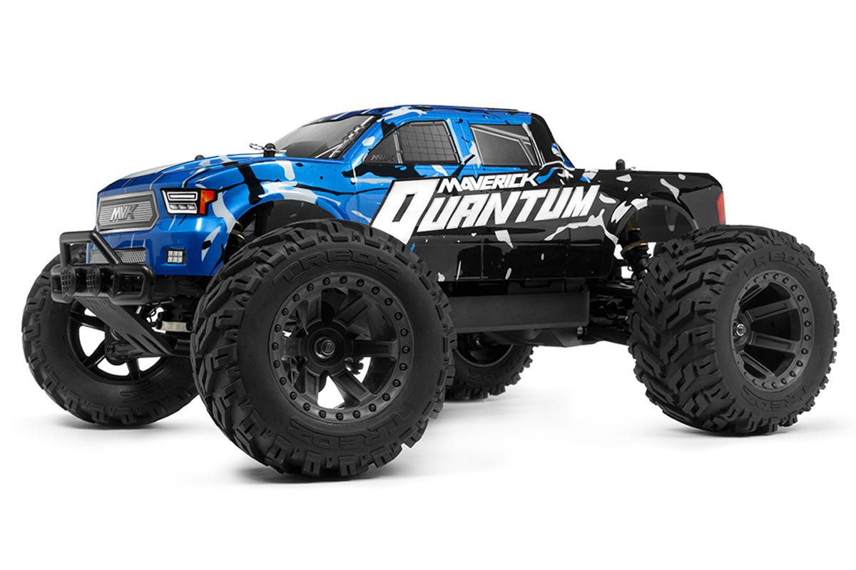 The Maverick Quantum MT is a rugged 4WD Shaft-Driven monster truck with a high ground clearance chassis design and high ride height suspension set up for clambering over anything in its way! With independent Double Wishbone Suspension, Oil Filled Adjustable Coilover Shocks and Tough Metal 4-Gear Differentials Front & Rear, no amount of dirt or jumps will stand in your way!