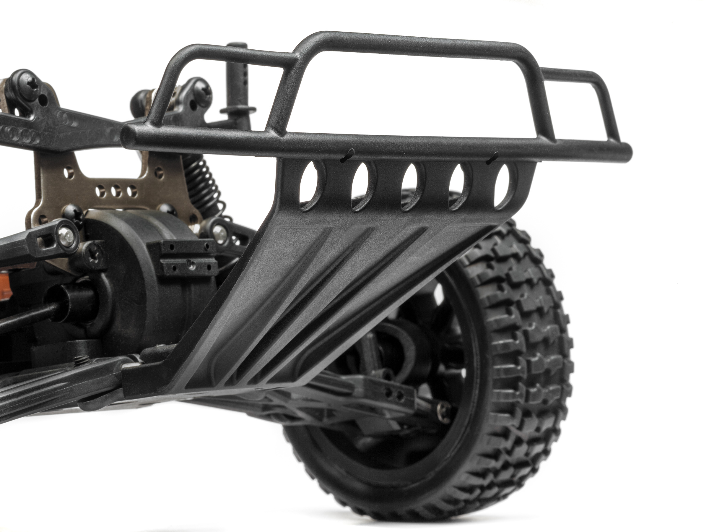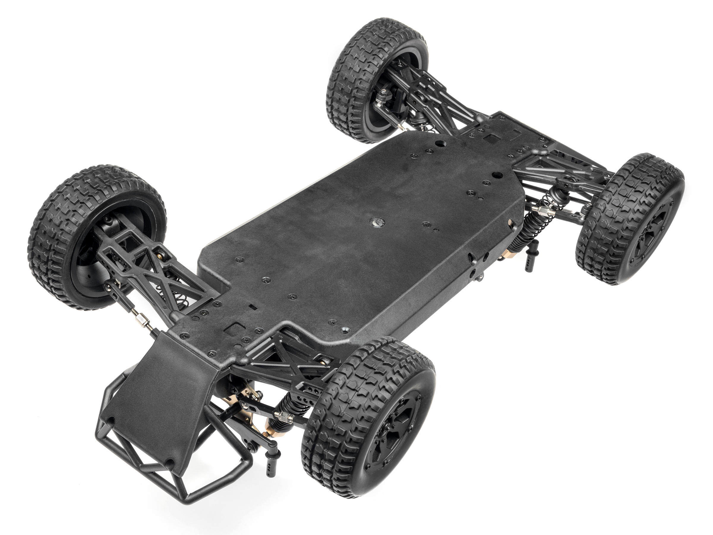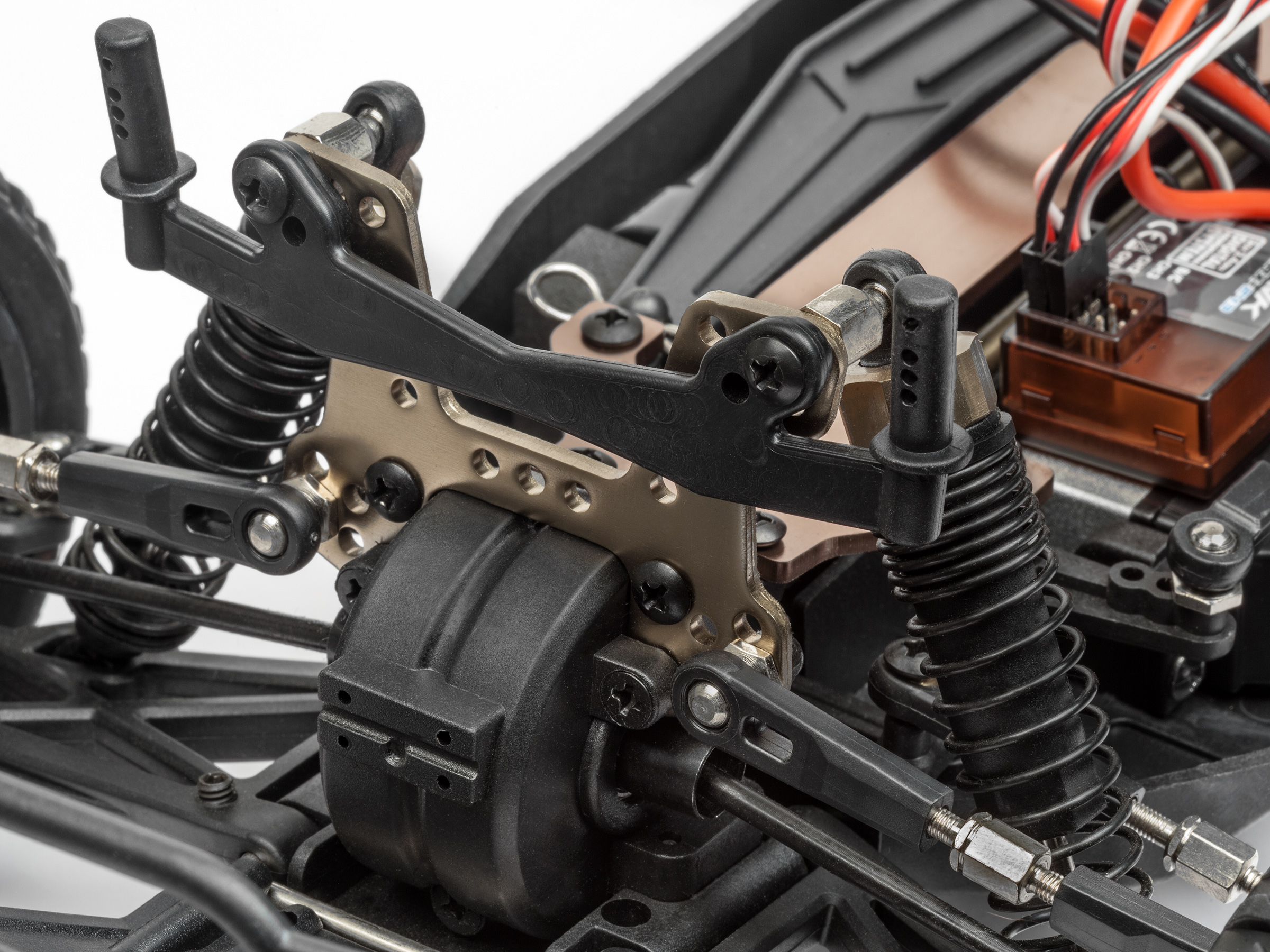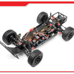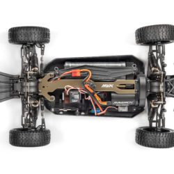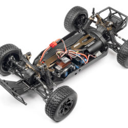 Each Strada Brushless vehicle features a molded tub chassis that provides durability and a stable and tough platform for a strong 4WD shaft drivetrain. Pre-built oil-filled shock absorbers and dual-wishbone independent suspension front and rear, give you supreme confidence on all driving surfaces. The MS-22 servo controls the steering through a dual-point steering system that features an integrated servo saver to protect the servo against crash damage.