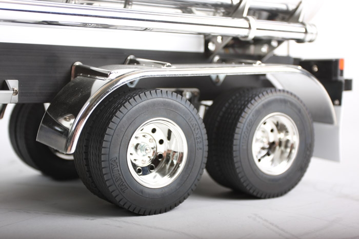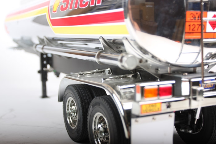 his Tanker Trailer model kit that can be hooked up to 1/14 scale R/C tractor trucks. The tank is made from polished stainless steel, for a brilliant finish. Colorful and authentic sponsor stickers add to the total realism of the model