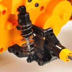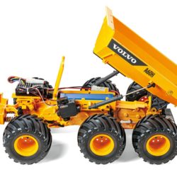 Our fun G6-01 chassis has seen some fun fictitious 6-wheelers and some real-life vehicle inspirations in the form of a school bus and semi-truck. This truck recreates a subject in the form of a working vehicle: Volvo’s A60 hauler. The actual vehicle is a revolutionary design, offering exceptional flexibility and mobility as well as the sheer strength required to haul loads in quarries and other similarly grueling workplaces.