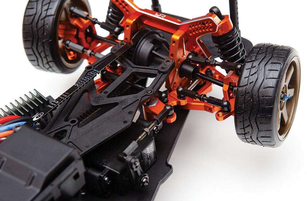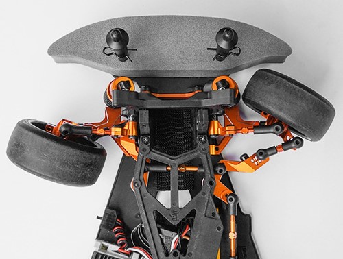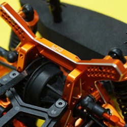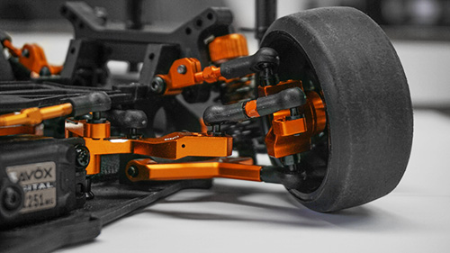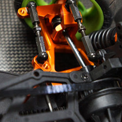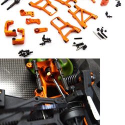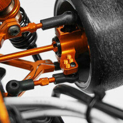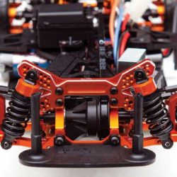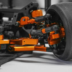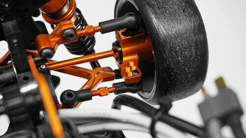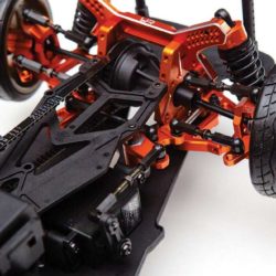 The kit features a “C Hub-less” and y-arm conversion which brings this in line with what modern drift cars use. Due to this, a large steering angle is possible! Both front and rear upper arms are adjustable. This is the ultimate upgrade kit for people who are sick of seeing the plastic parts breaks again and those who wanted to unleash your Sprint 2 to its full RWD potential.